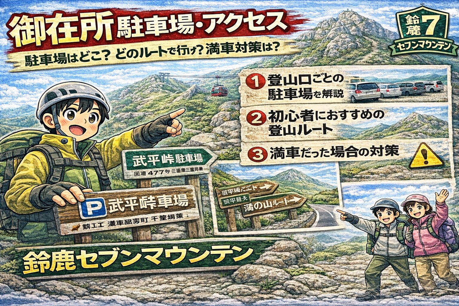 この記事では、実際に御在所岳を何度も歩いた経験をもとに、登山口へのアクセス・各駐車場の特徴・ルート別の行き方・当日の注意点を詳しくまとめました。